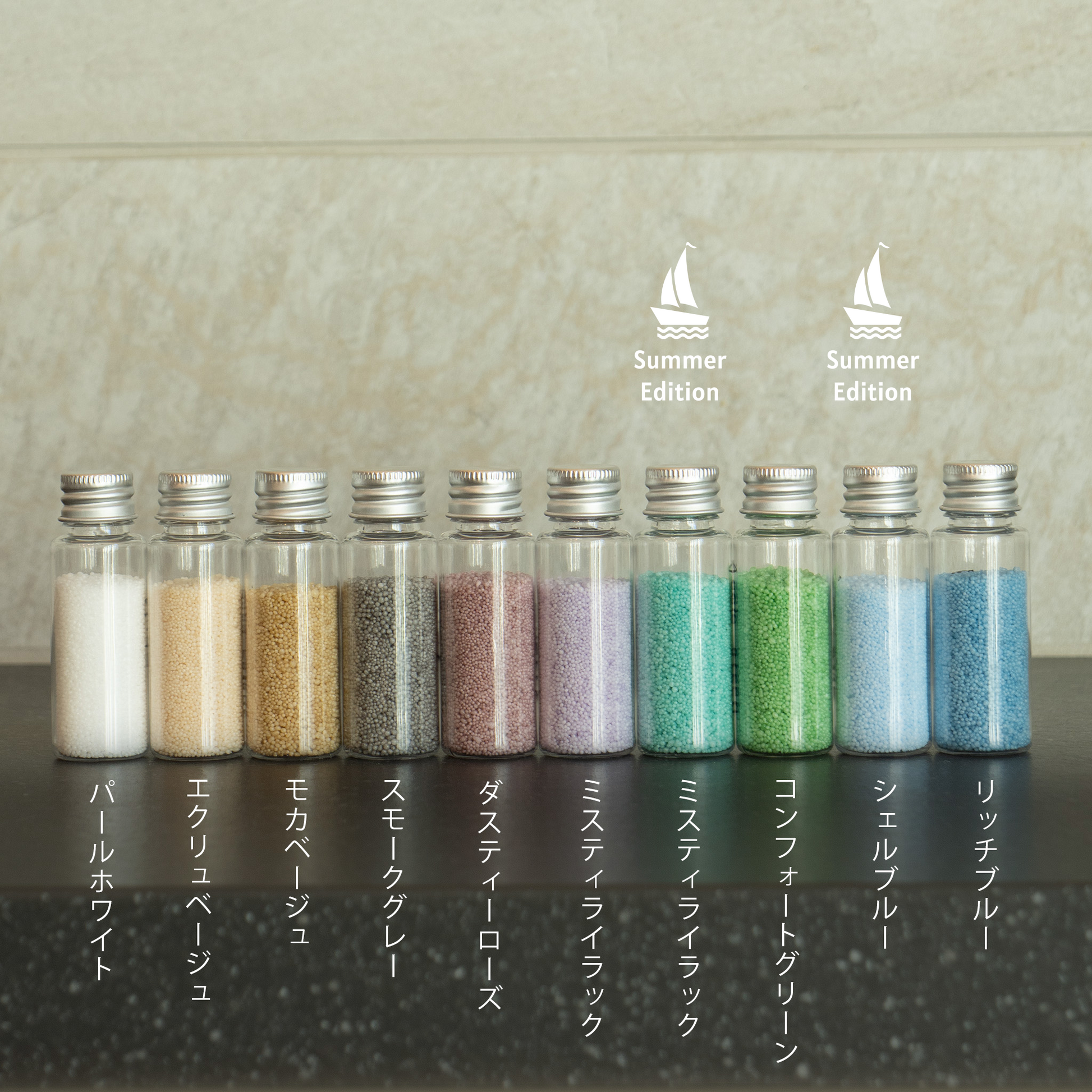 海辺で拾った貝殻のように、儚さを感じる「シェルブルー」と、LUEURの感性でセレクトしたニュアンスカラーの2色を組み合わせたセット。LUEURのベーシックカラー9色の中からお好きなカラーを1色自由に選べます。