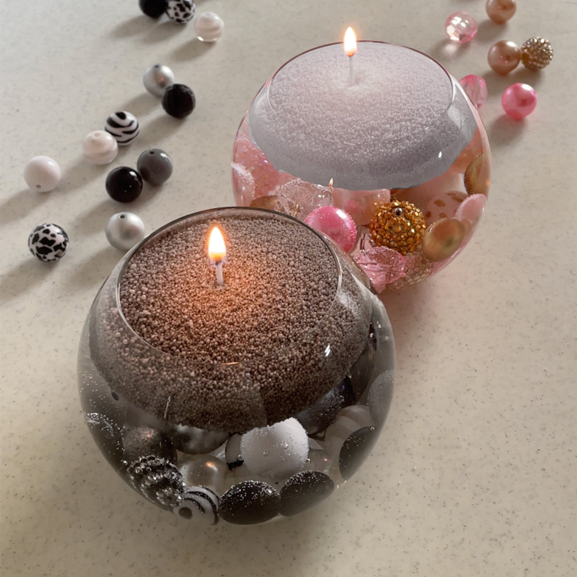 お好きなカラーのキャンドル2色、器、ビーズの装飾が一緒になっているので、届いたその日からキャンドルを器に注いで灯せます。